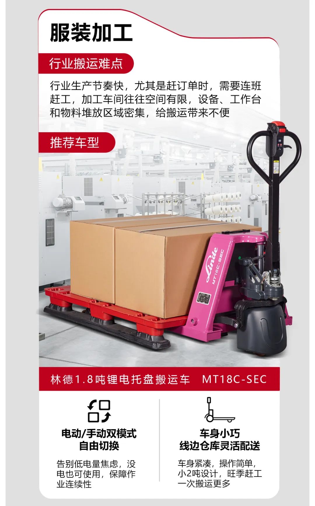 林德(中國(guó))秉承“用科技創(chuàng)造物流高效”的經(jīng)營(yíng)理念,堅(jiān)持以用戶需求為導(dǎo)向,深入實(shí)際應(yīng)用場(chǎng)景,持續(xù)打造物超所值的搬運(yùn)設(shè)備、服務(wù)及整體解決方案。在新能源、自動(dòng)化及數(shù)字化等新興領(lǐng)域,公司相繼推出鋰電、氫燃料電池、AGV自動(dòng)搬運(yùn)機(jī)器人、數(shù)字化車隊(duì)管理系統(tǒng)等新技術(shù)、新產(chǎn)品,實(shí)現(xiàn)“從單點(diǎn)設(shè)備到萬物互聯(lián)”、“從產(chǎn)品到硬件+數(shù)字化/自動(dòng)化+應(yīng)用場(chǎng)景”的轉(zhuǎn)型升級(jí),成為值得用戶信賴的行業(yè)解決方案供應(yīng)商。