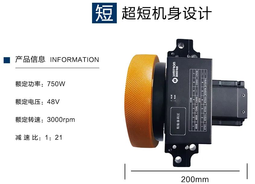 側(cè)背式伺服輪驅(qū)模組的驅(qū)動(dòng)器安裝在電機(jī)的側(cè)面,進(jìn)一步縮短了整體機(jī)身長(zhǎng)度,從而縮小了動(dòng)力單元部分在車體內(nèi)的占用空間,大幅度提升了機(jī)器人車體剩余空間利用率。外部只需電源和通信線纜,抗干擾性強(qiáng),提高了移動(dòng)機(jī)器人的運(yùn)行穩(wěn)定性和可靠性。