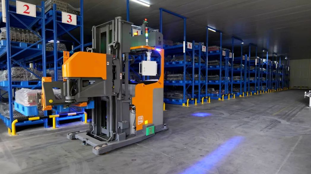 采用卓一智能三向AGV叉車,載重1.6噸,最大舉升高度可達(dá)到9m。有效提高客戶倉庫庫容率,貨架堆垛通道寬度僅需1.75m,庫位相比原有倉庫增加近一倍。