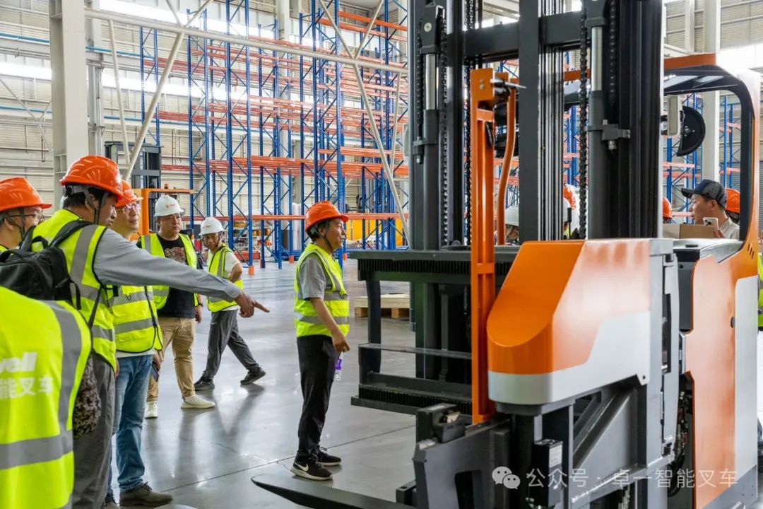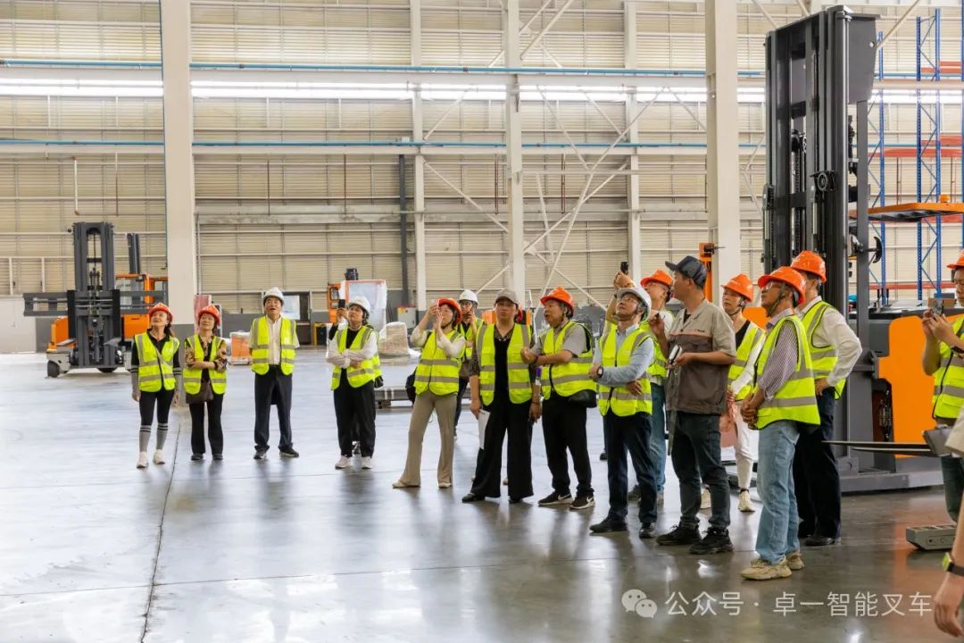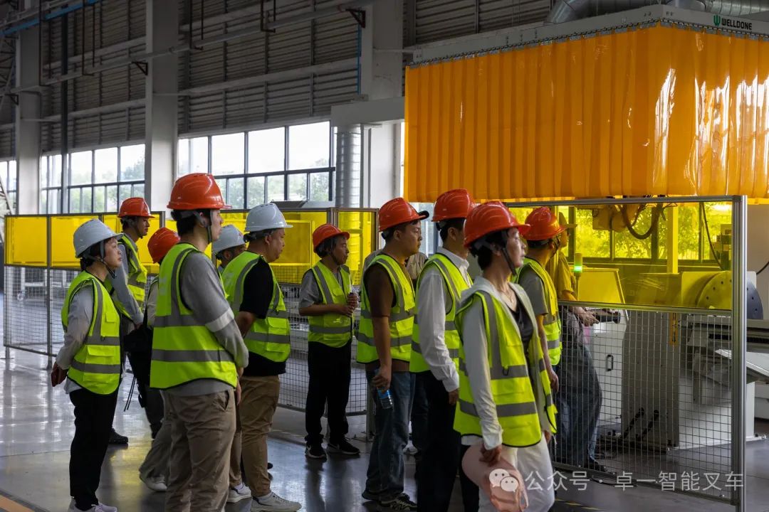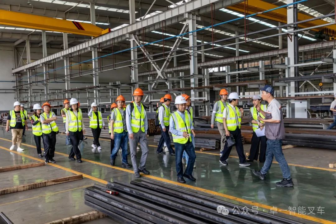 工廠參觀期間,卓一智能叉車工程部主管帶領客人一邊參觀新工廠,一邊詳細介紹已投產新工廠的建設情況和生產規(guī)模。