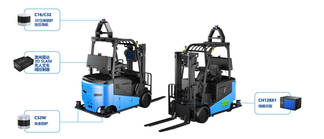 鐳神智能3D SLAM無人叉車系列產(chǎn)品通過激光雷達(dá)3D SLAM技術(shù)、AI棧板識別及運動控制等技術(shù)實現(xiàn)了高精度定位、自主導(dǎo)航以及精準(zhǔn)識別,自主高效地完成了平面搬運、貨架堆垛以及料籠堆疊等任務(wù)。周身配置的多顆高性能激光雷達(dá)為無人叉車安全作業(yè)構(gòu)筑了堅不可摧的防線,確保每一次操作都穩(wěn)定可靠。