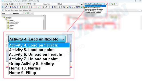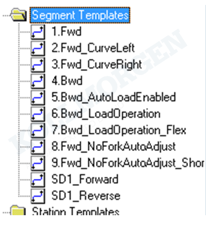 行駛路徑由圖形繪制,并以線段呈現(xiàn)。一條線段代表一部分行駛路徑,而且系統(tǒng)設(shè)計人員可以設(shè)定某一線段上的車輛表現(xiàn)(行駛速度、行駛方向等)。系統(tǒng)設(shè)計者可設(shè)定在哪里以及如何進(jìn)行裝載、卸載和電池充電等操作。這些位置稱為站點(Station)。也可以設(shè)定基于車輛位置的其他操作,例如開門和關(guān)門等。在Layout Designer工具中創(chuàng)建的布局需要被裝載到其他系統(tǒng)軟件中才能生效。