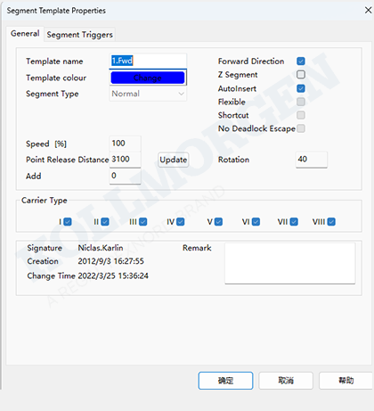 3、還有,當(dāng)車輛行駛到該路段上需要觸發(fā)的Segment Triggers(配合PLC編程使用)等信息。