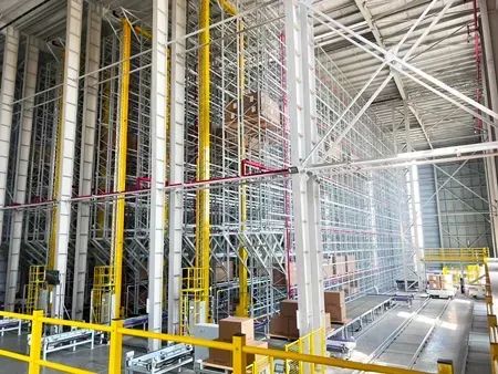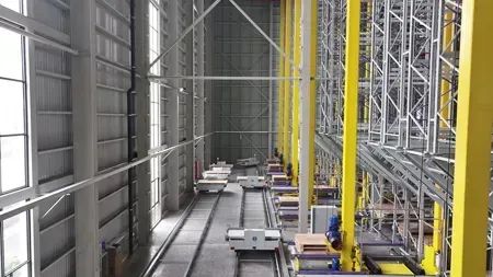 此項(xiàng)目智能倉儲(chǔ)功能區(qū)包括2個(gè)成品庫,部署雙深位堆垛機(jī)、RGV、AGV以及WCS、WMS等智慧軟件系統(tǒng),實(shí)現(xiàn)了整體倉儲(chǔ)系統(tǒng)數(shù)字化、智能化、可視化運(yùn)營及管理!庫前區(qū)改變了傳統(tǒng)的輸送線輸送形式,采用環(huán)形軌道一軌多車的模式,在滿足客戶效率要求的情況下減少成本及設(shè)備軌道空間占用,并在有限的空間內(nèi),最大優(yōu)化貨位布局,以應(yīng)對(duì)未來訂單增長的存儲(chǔ)需求。