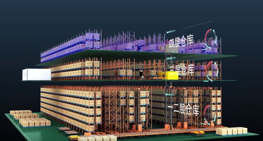 雙深位堆垛機(jī)運(yùn)行于立體庫貨架之間的巷道中,一部分貨物通過堆垛機(jī)存儲(chǔ)在一樓,另外部分貨物通過提升機(jī)送至3、4樓,然后通過叉車AGV接駁入庫,完成貨物的存儲(chǔ)工作。高位立體庫配有滾筒式輸送線和鏈條式輸送線,管理上采用計(jì)算機(jī)及條形碼技術(shù),配備含數(shù)據(jù)分析、數(shù)據(jù)挖掘等功能在內(nèi)的倉儲(chǔ)管理軟件。