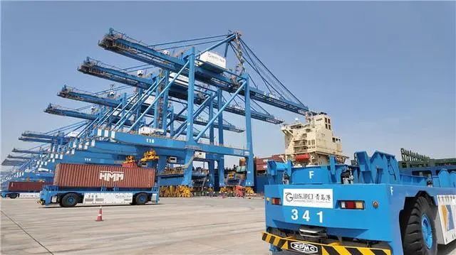 山東港口青島港自動化碼頭是全球領(lǐng)先、亞洲首個全自動化集裝箱碼頭。在碧海藍天之間,16臺藍色自動化橋吊屹立岸邊,不知疲倦地從巨輪上裝卸著來往全球各地的集裝箱。76臺高速軌道吊在堆場上高速往來穿梭,83臺自動導(dǎo)引車流轉(zhuǎn)自如、機動靈活。重達數(shù)十噸的集裝箱被輕巧抓起,精準堆碼,再被集裝箱卡車運往全國各地。偌大的碼頭和堆場杳無人蹤,生產(chǎn)作業(yè)卻行云流水。