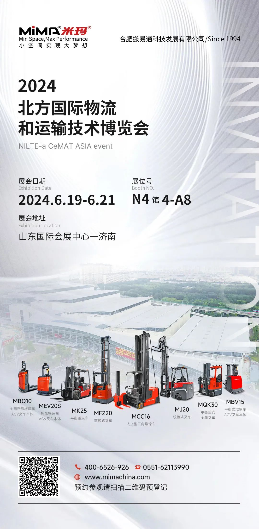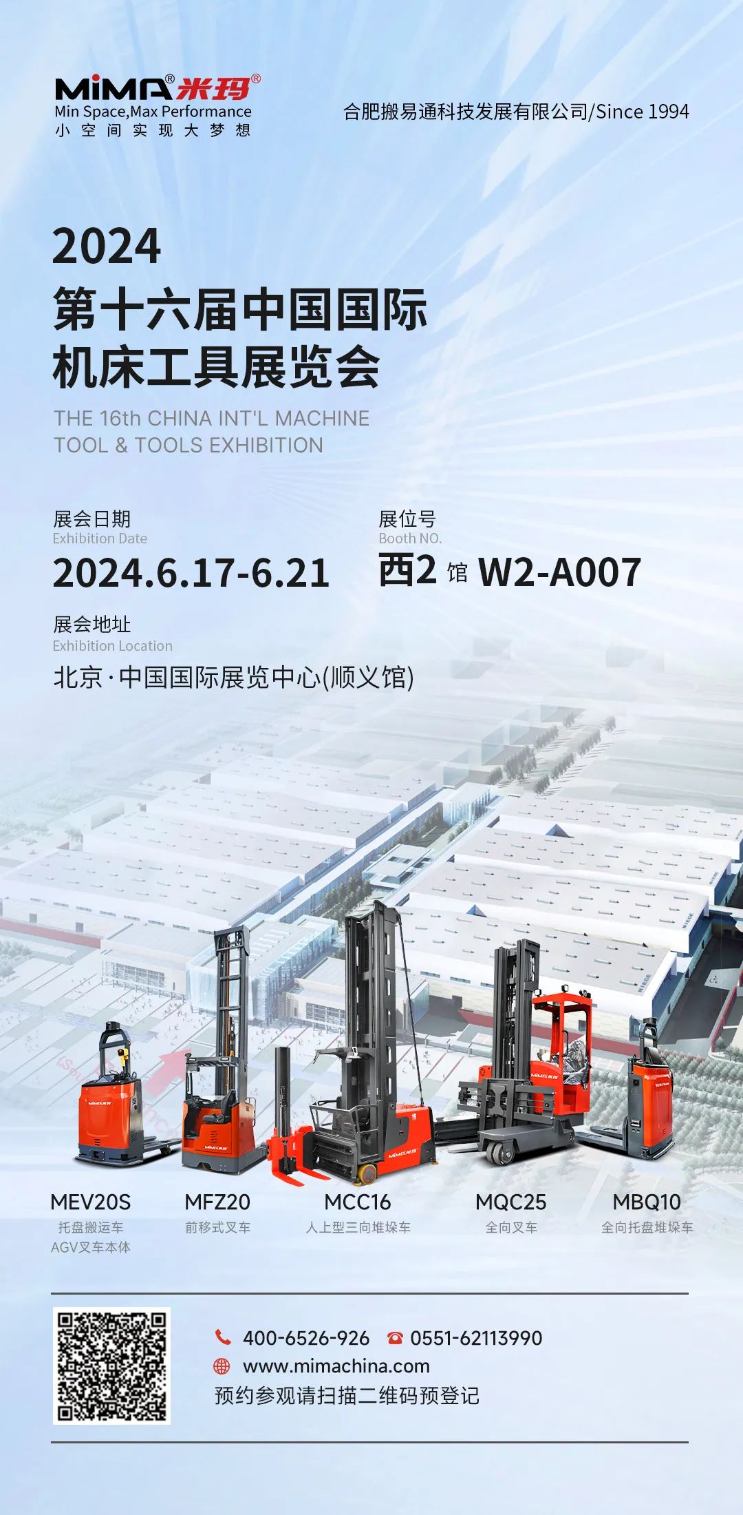 在這個充滿活力與期待的六月,合肥搬易通(MiMA)將攜多款備受矚目的明星展品,隆重亮相第16屆中國國際機床工具展覽會以及北方國際物流和運輸技術博覽會。合肥搬易通(MiMA)憑借對技術的堅定追求和持續(xù)創(chuàng)新,不斷研發(fā)并推出先進的叉車技術,為倉儲物流領域注入源源不斷的創(chuàng)新活力。此次參展,合肥搬易通(MiMA)將再次向全球展示其技術實力與創(chuàng)新成果,期待與業(yè)界同仁交流、合作,共同推動機床工具行業(yè)以及物流運輸行業(yè)的飛速發(fā)展。