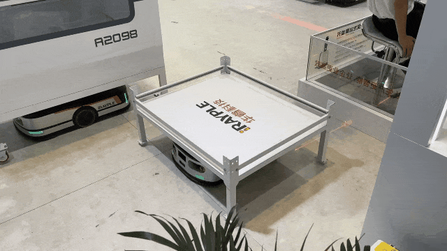 本次展會展出的花籃料車搬運AMR是華睿第四代潛伏型AMR,其優(yōu)化的尺寸能夠適應(yīng)更狹窄的通道,并支持多種載具。它同樣采用激光SLAM和視覺融合導(dǎo)航技術(shù),以滿足不同環(huán)境的導(dǎo)航需求。多重避障方案的組合,為操作過程提供了額外的安全保障??焖匐姵馗鼡Q功能,確保了機(jī)器人的高效連續(xù)運行。