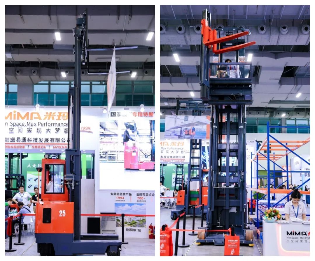 本次展會(huì),合肥搬易通(MiMA米瑪)攜帶了最新的1.6噸人上型三向叉車MCC16、站駕式三向叉車MC16、全向叉車MQC25、鉸接式叉車MJ20、前移式叉車MFZ20及一系列AGV叉車本體,充分展現(xiàn)了其在智能物流裝備領(lǐng)域的創(chuàng)新實(shí)力。