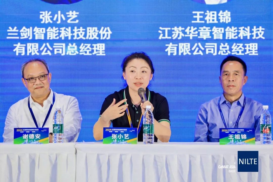 展會期間蘭劍智能總經(jīng)理張小藝受邀出席由中國物流與采購聯(lián)合會與漢諾威米蘭展覽(上海)有限公司聯(lián)合主辦的以“技術(shù)引領(lǐng) 創(chuàng)新驅(qū)動”為主題的物流技術(shù)創(chuàng)新論壇。圍繞“數(shù)智化未來,如何依靠技術(shù)創(chuàng)新為新質(zhì)生產(chǎn)力蓄勢賦能”這一互動話題,蘭劍智能總經(jīng)理張小藝以蘭劍智能超級未來工廠為例,從產(chǎn)線自動化變革到精益化管理,再到用機器人生產(chǎn)機器人的目標(biāo),全方位闡述蘭劍智能對新質(zhì)生產(chǎn)力的理解。