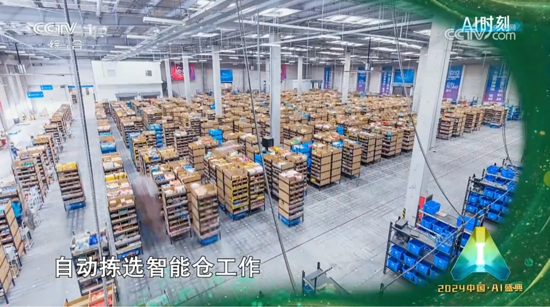 此次亮相央視《2024中國·AI盛典》菜鳥無錫智能倉在2018年雙11期間建成投用。相比于傳統(tǒng)的人工揀選操作,智能倉內(nèi)的AGV機器人在接到指令后可以自動在貨架指定區(qū)揀貨、搬貨,進而節(jié)省50%人力成本,減少95%的工作人員步行距離,并使物流效率提升3倍以上。