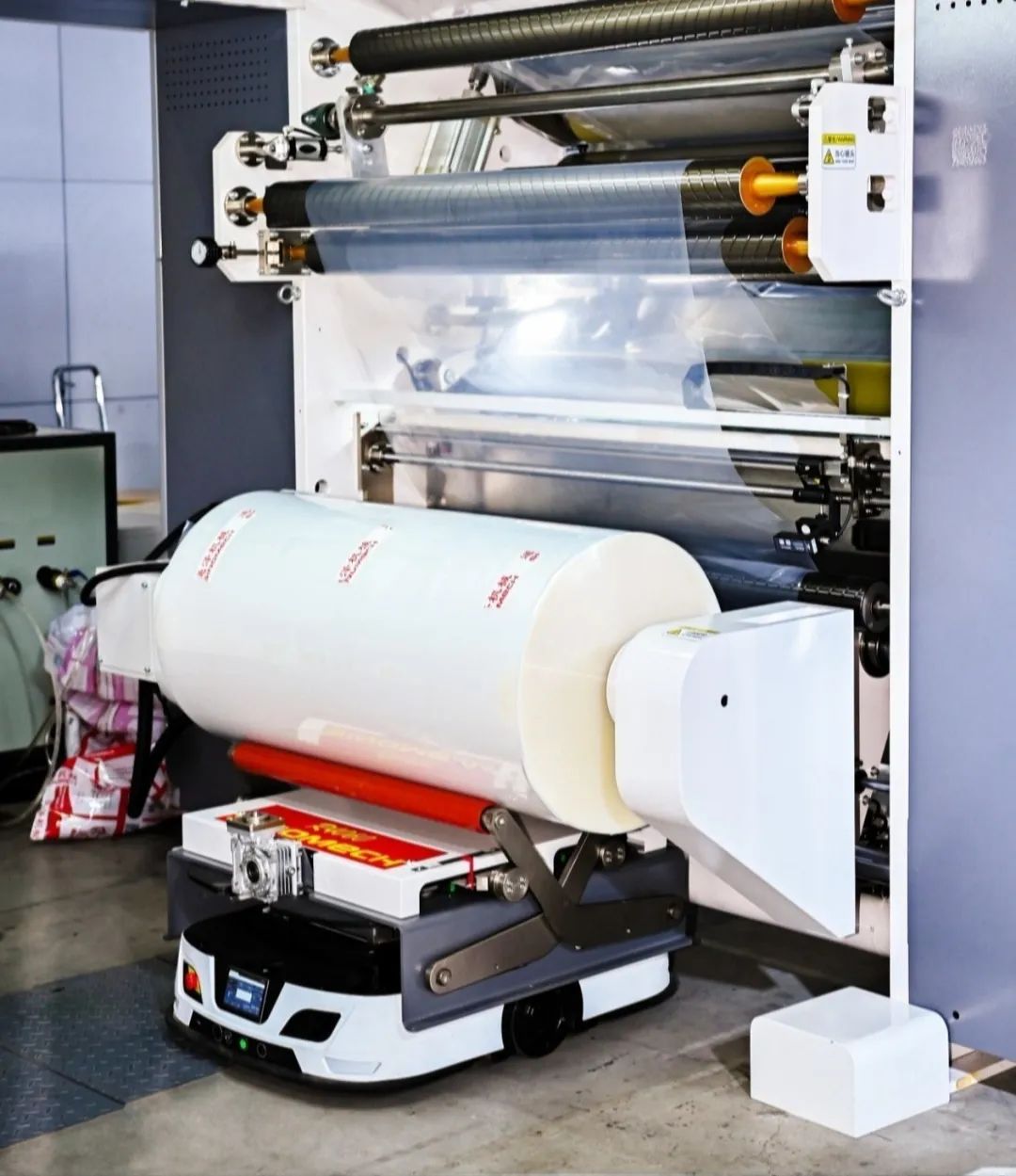 作為包裝智能化的先行者——杭州數(shù)創(chuàng)的包裝智能工廠整體解決方案由智能移動機器人(印刷機上下料機器人/潛伏式搬運機器人/無人叉車)、打橫機、在線瑕疵檢測系統(tǒng)等軟硬件組成。方案貫穿原材料到印刷、復合、熟化、檢品、分切和最終的制袋環(huán)節(jié)。通過數(shù)字化、智能化解決方案的部署和智能設備的引入,實現(xiàn)機器人換人和生產(chǎn)效率的顯著提升。