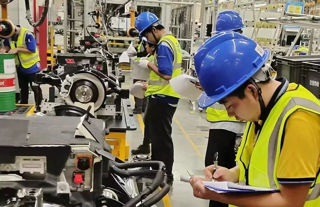 在工廠的沖壓、總裝、電池等車間,也可時時能感知數(shù)智賦能帶來的便捷,處處可見機器人的“身影”:總裝料架包裝零件從存儲到運出全流程無人化現(xiàn)場操作;動力電池?zé)o需人工排序,系統(tǒng)自動精準(zhǔn)排序,AGV按照先進先出、精確匹配原則自動搬運……