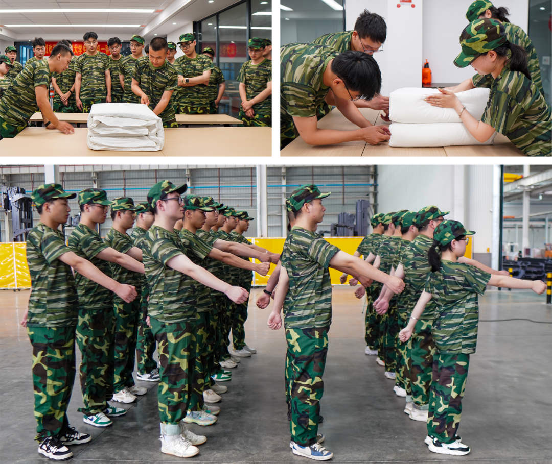 “立正、稍息、齊步走!”新知識(shí)員工們一絲不茍的完成教官鏗鏘有力的指令,疊“豆腐塊”、踢正步、列隊(duì)訓(xùn)練也毫不松懈,即便揮汗如雨,一招一式大家也都銘記于心。