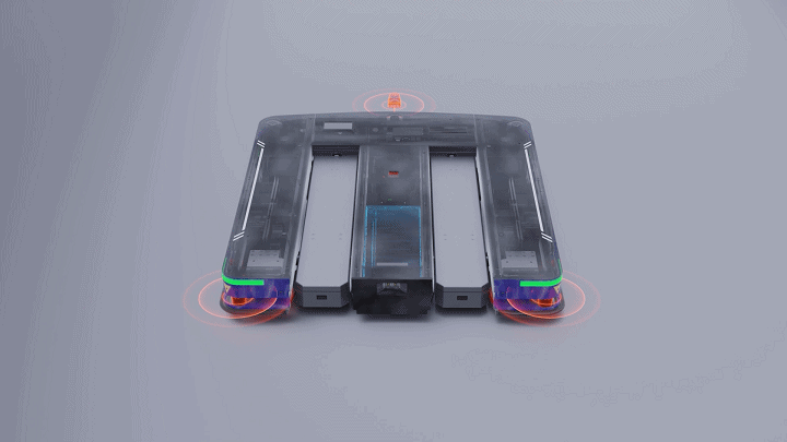 搬運過程中采用整個車身承載,具有更高的穩(wěn)定性。原地旋轉(zhuǎn)適應(yīng)窄通道場景。
