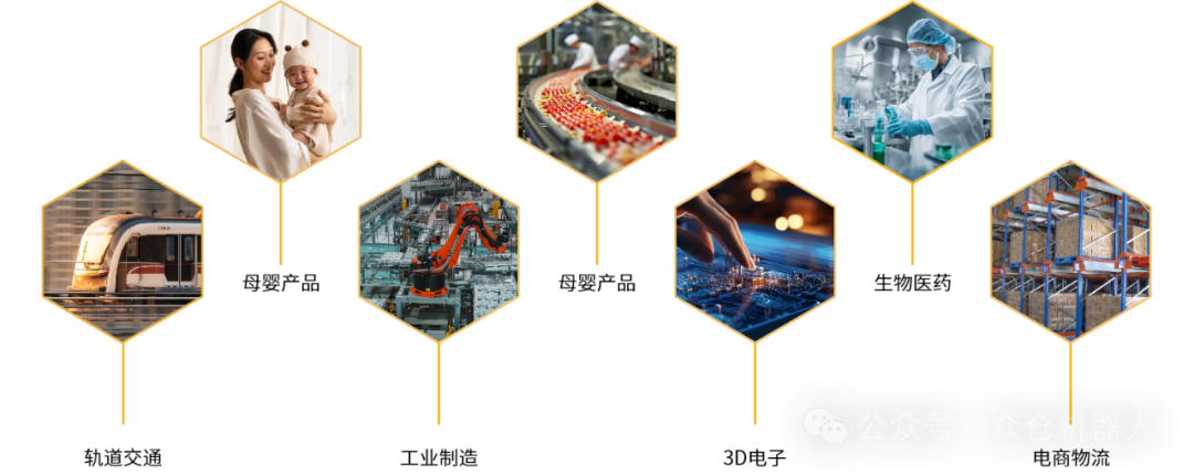 眾倉機(jī)器人的產(chǎn)品已廣泛應(yīng)用于軌道交通、物流倉儲、食品、醫(yī)藥、母嬰、汽車等多個行業(yè)。無論是原材料入庫、產(chǎn)線配送,還是成品出庫、訂單分揀,甚至是極端環(huán)境下的特種物品搬運(yùn),眾倉機(jī)器人都能提供適配的智能化解決方案,助力企業(yè)實現(xiàn)倉儲物流環(huán)節(jié)的降本增效、安全可控。