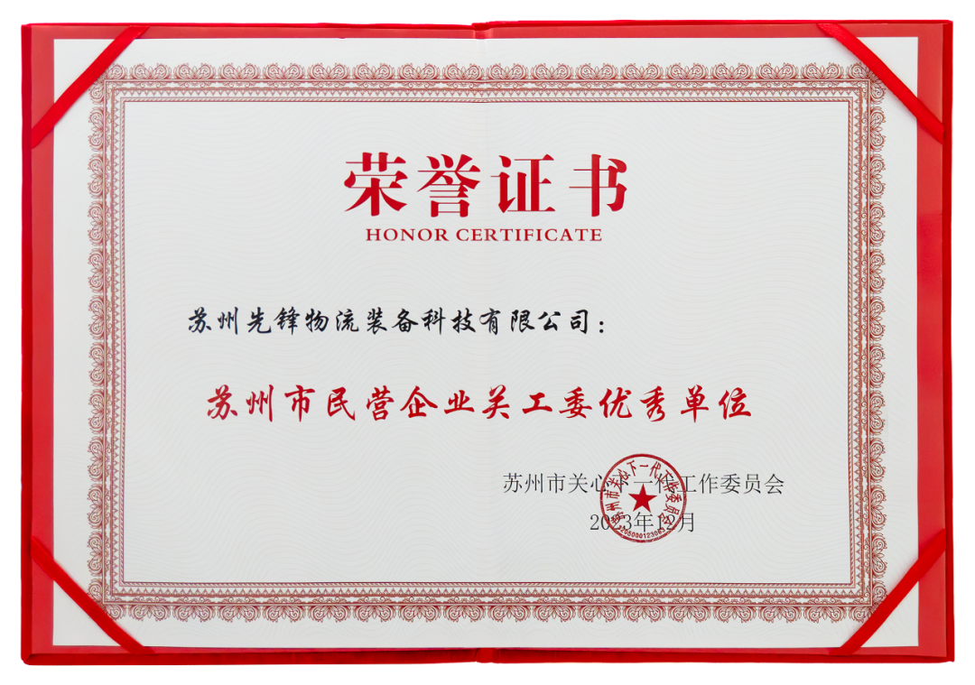 卓一智能叉車作為關心下一代的先進集體,榮獲“蘇州市民營企業(yè)關工委優(yōu)秀單位”榮譽稱號!