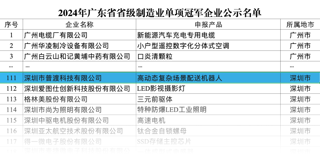 近日,深圳市普渡科技有限公司(以下簡稱“普渡機(jī)器人”)憑借在高動(dòng)態(tài)復(fù)雜場景配送機(jī)器人領(lǐng)域的卓越實(shí)力,又一次獲得了行業(yè)的高度認(rèn)可,被授予“2024年廣東省省級制造業(yè)單項(xiàng)冠軍企業(yè)”稱號。
