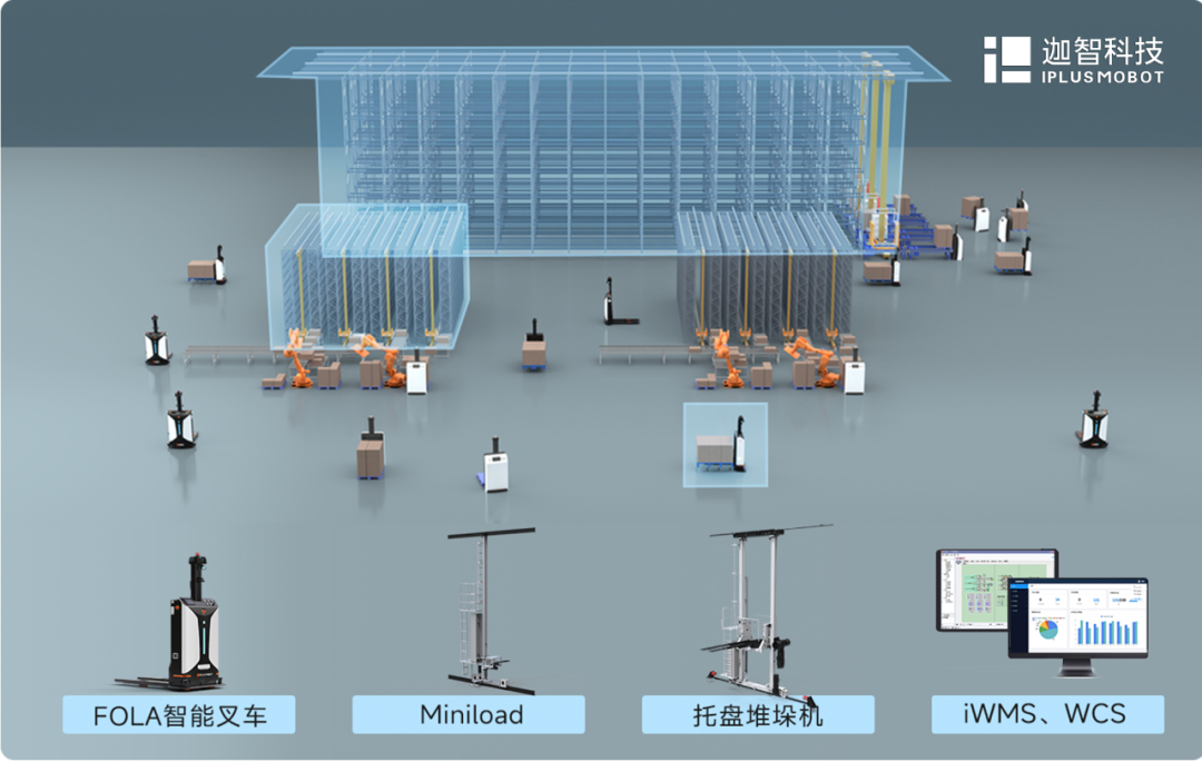 迦智科技為其部署了3巷道托盤堆垛機立庫+1巷道多層穿梭車立庫智能倉儲解決方案,通過將托盤、輸送線、提升機和iWMS、WCS等軟硬件設備一體化融合,結合AMR機器人的柔性搬運,充分滿足多品規(guī)電子原材料頻繁出入庫和在庫管理科學智能化需求,實現(xiàn)對倉儲物流信息的可視化管理,提高倉儲作業(yè)效率和準確率。