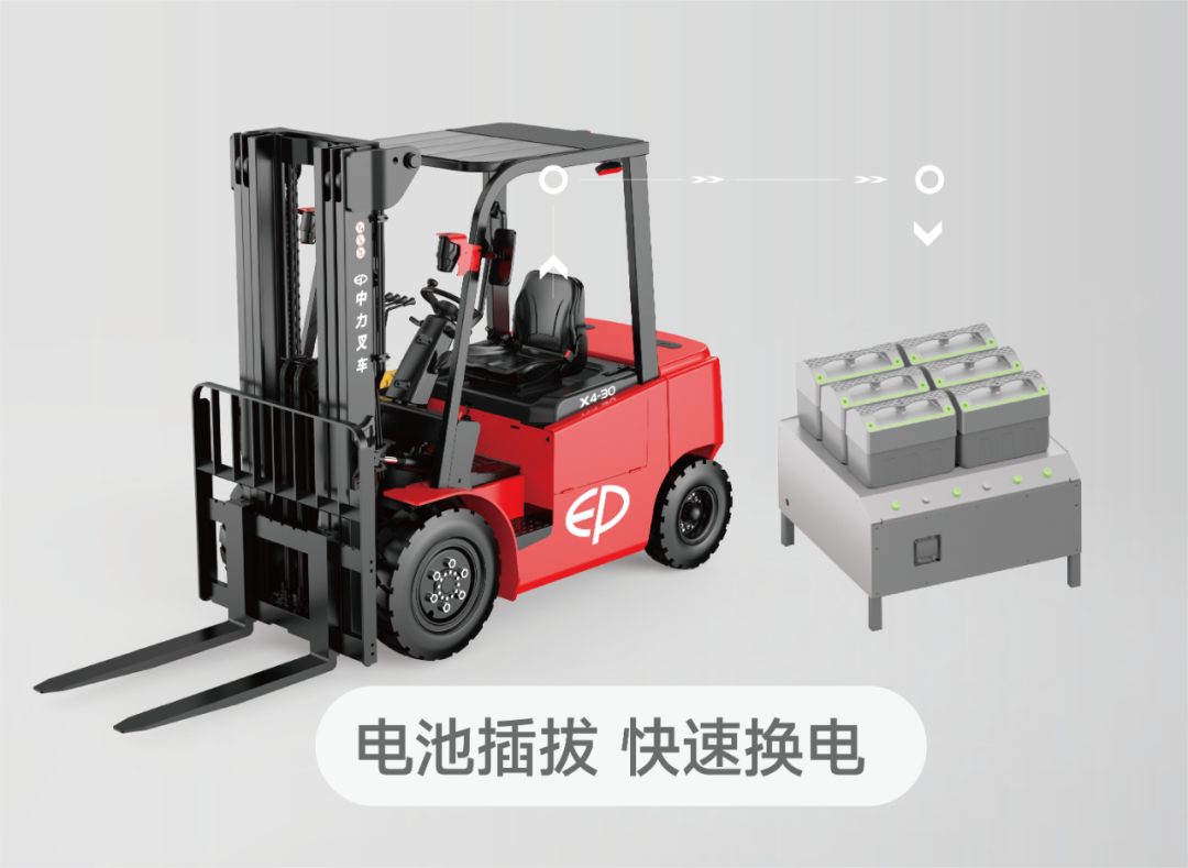 開創(chuàng)手提換電先河,中力推出3.0噸鋰電叉車。綠色環(huán)保鋰電營造舒適作業(yè)環(huán)境,永磁同步電機能耗更低,作業(yè)更高效!