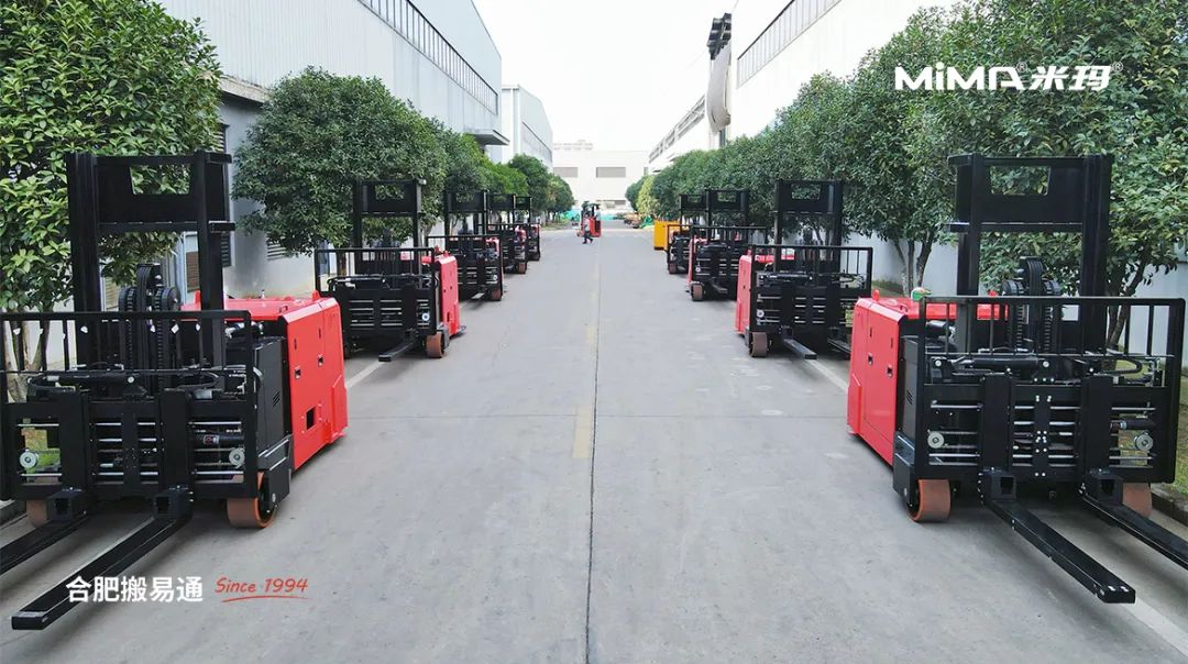 秋風(fēng)送爽之際,合肥搬易通(MiMA米瑪)總部處于批量發(fā)貨的繁忙盛景之中。近日,十臺MiMA米瑪5噸室內(nèi)平衡重叉車AGV本體在經(jīng)過嚴(yán)格的質(zhì)量檢測后,整裝待發(fā),迎來該筆訂單首批發(fā)貨。(客戶訂單為三十余臺同款車型)