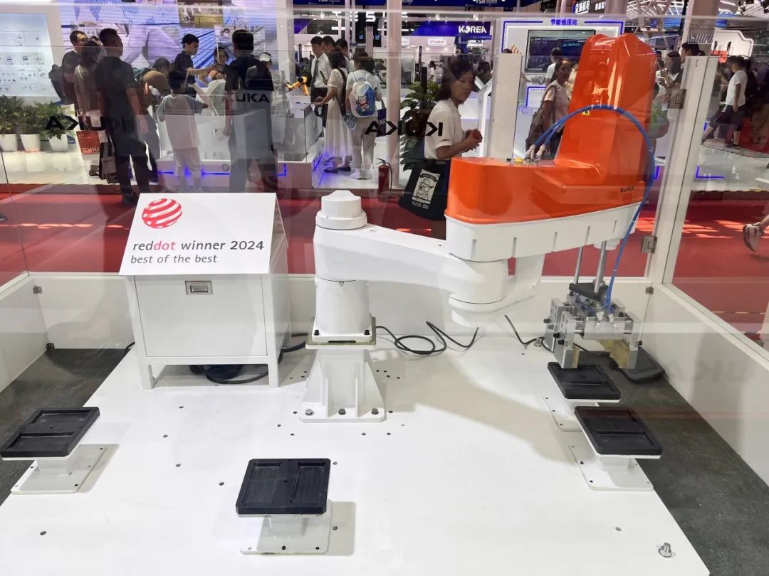 在2024 WRC世界機(jī)器人大會(huì)上,庫(kù)卡展出了全新AI機(jī)器人控制器KR C5 micro-2+數(shù)字孿生展示工站。其中,控制器KR C5 micro-2相比于前一代產(chǎn)品體積減少了25%,重量減輕了約1.3kg;而數(shù)字孿生工站,則可以讓程序員在軟件里創(chuàng)建現(xiàn)實(shí)機(jī)器人碼垛的精準(zhǔn)仿真模型,并直接在仿真環(huán)境中進(jìn)行必要的調(diào)整,再實(shí)施到實(shí)物機(jī)器人上。同時(shí),由KR 60 SCARA CS機(jī)器人和KR CS Box-2控制器組成的電芯搬運(yùn)工作站同期展出,展現(xiàn)機(jī)器人高負(fù)載、高速度、高精度、高穩(wěn)定的搬運(yùn)能力。此外,KUKA AMR KMP 3000P首次動(dòng)態(tài)亮相,這是一款面向全球的重載移動(dòng)機(jī)器人,最大負(fù)載可提升至6T,整車軟硬件本土研發(fā)生產(chǎn),面向全球銷售,主要服務(wù)于汽車制造、鋰電PACK、光伏原料等重載場(chǎng)景,其外觀設(shè)計(jì)獲得2024 德國(guó)紅點(diǎn)至尊獎(jiǎng)。