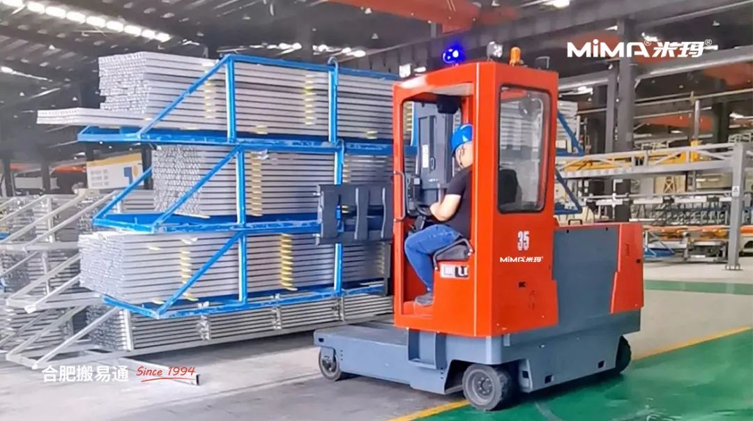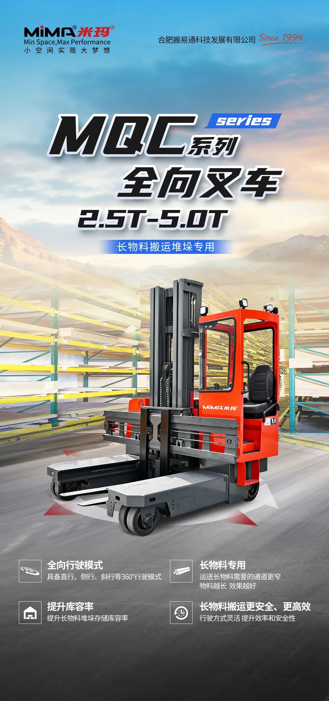 MiMA米瑪MQC系列全向叉車,專為搬運堆垛長物料而設計,全向行駛靈活穿梭,狹窄通道應對自如,有效提高倉儲空間利用率,讓長物料搬運堆垛更輕松,廣泛服務于幕墻、鋁型材、木材等多個行業(yè)。