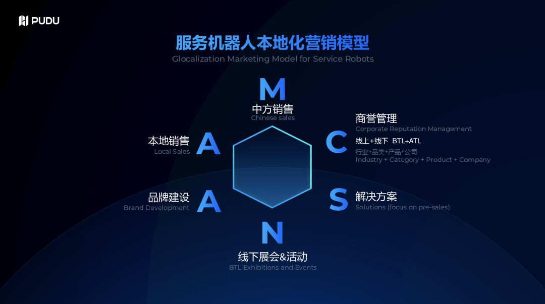 很多公司在出海早期往往只有M(中方銷售)一種方式,最終的結果就是蜻蜓點水,無法深入拓展業(yè)務,基于MAANSC模型的本地化營銷策略則能夠幫助機器人企業(yè)迅速打開本地市場。