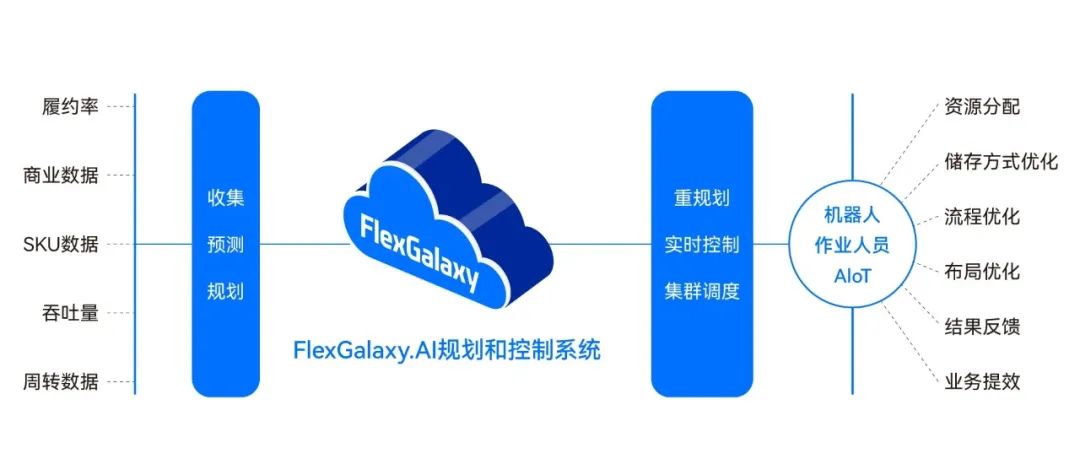 在倉儲(chǔ)物流場景中,F(xiàn)lexGalaxy.AI 可以實(shí)現(xiàn)高效人機(jī)協(xié)同作業(yè),帶來聰明且靈活的真柔性物流體驗(yàn)。FlexGalaxy.AI一端與倉庫管理系統(tǒng)對接,實(shí)現(xiàn)智能組單、優(yōu)化 AMR 調(diào)度,另一端AMR根據(jù)云端指令,與工作人員配合進(jìn)行貨物揀選、上架和搬運(yùn)等操作,極大減少人力浪費(fèi),提高倉庫運(yùn)營效率。同時(shí),F(xiàn)lexGalaxy.AI 可以實(shí)時(shí)監(jiān)測數(shù)據(jù)每個(gè)作業(yè)現(xiàn)場下的運(yùn)行數(shù)據(jù),動(dòng)態(tài)調(diào)整機(jī)器人作業(yè)流程,助力全流程運(yùn)營數(shù)智化。