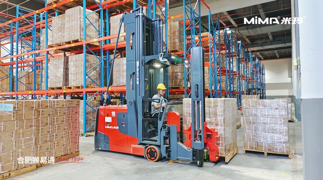 合肥搬易通(MiMA米瑪)銷(xiāo)售工程師對(duì)客戶(hù)倉(cāng)庫(kù)進(jìn)行實(shí)地考察后,為其制定了窄巷道高位密集倉(cāng)儲(chǔ)解決方案,并向客戶(hù)推薦使用1.6噸的MiMA米瑪人上型三向叉車(chē)MCC16。