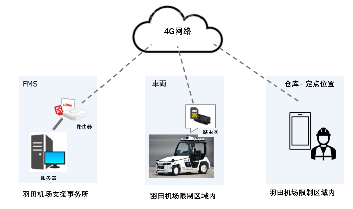 針對安全性更高的LEVEL4自動駕駛作業(yè),搭載了可把握車輛周圍情況的遠程監(jiān)控功能,迅速對應異常情況。為了實現(xiàn)高效運營,還全新開發(fā)了集機場和貨物區(qū)域車輛調(diào)度指令管理、現(xiàn)場工作人員作業(yè)項目等信息為一體的車輛管理系統(tǒng)“Fleet Management System(以下簡稱FMS)”。