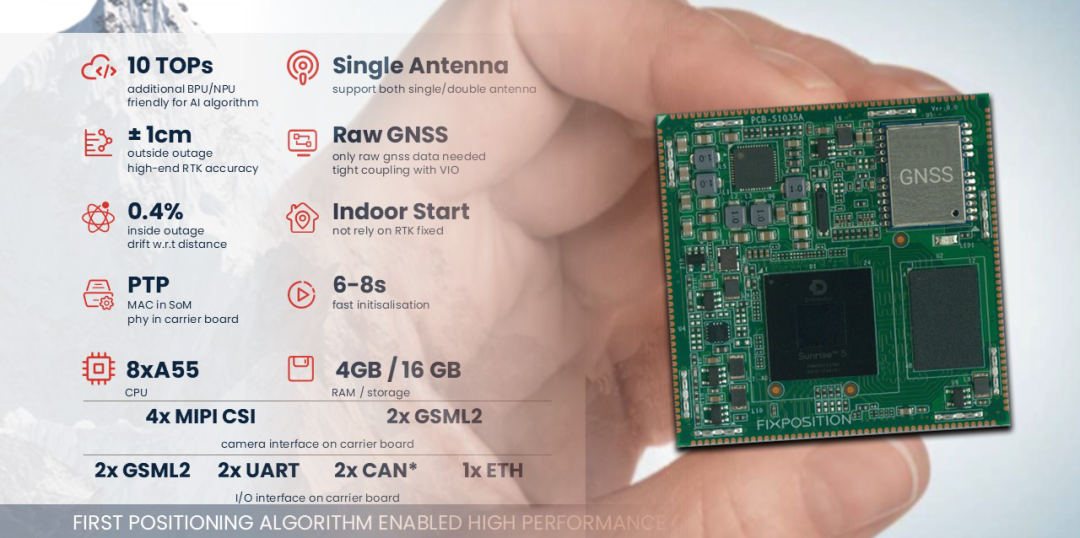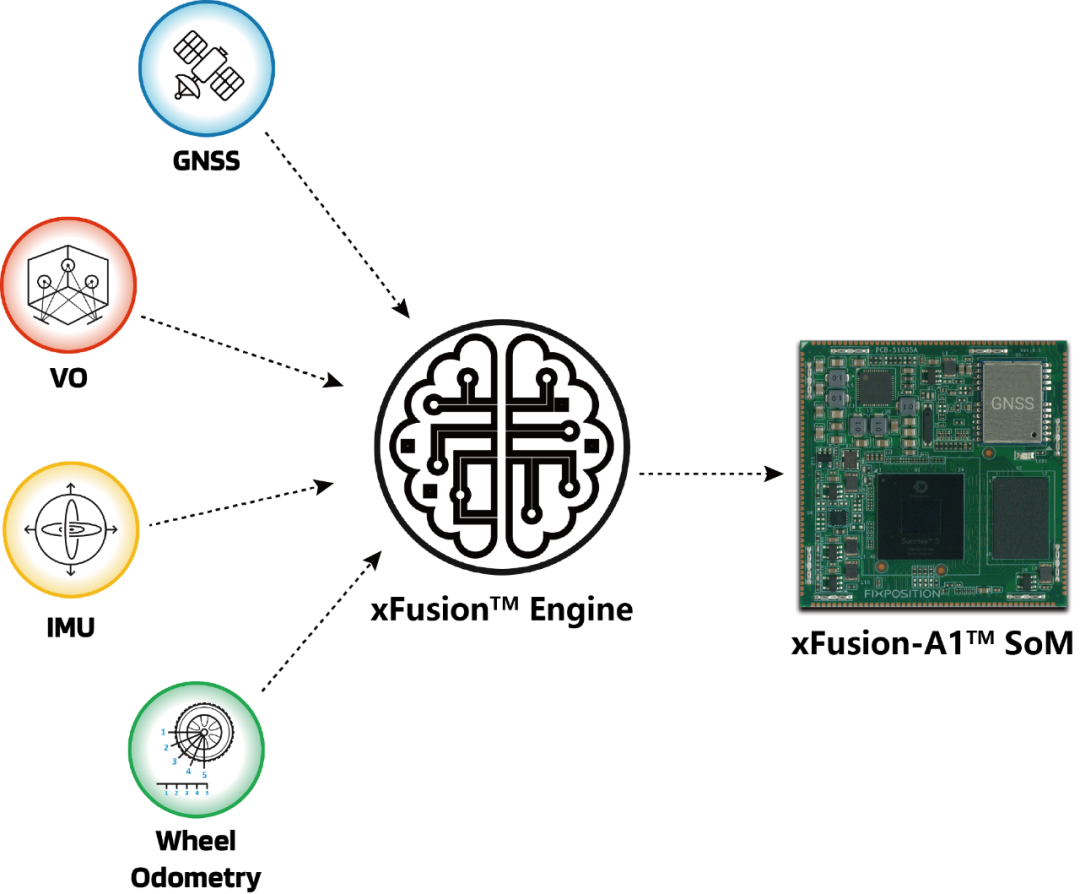 本次傾力打造的xFusion-A1定位感知模組沿襲了先前定位傳感器的先進(jìn)技術(shù),內(nèi)部運(yùn)用Fixposition的專利xFusion融合引擎,將GNSS數(shù)據(jù)(偽距、載波、多普勒等)、視覺、IMU數(shù)據(jù)、車輛動(dòng)態(tài)輸入等傳感器數(shù)據(jù)進(jìn)行深度融合運(yùn)算,以此獲得全局最優(yōu)定位結(jié)果,這是業(yè)內(nèi)第一次將原始GNSS數(shù)據(jù)與視覺、慣導(dǎo)深度融合做到模組級(jí)別。
