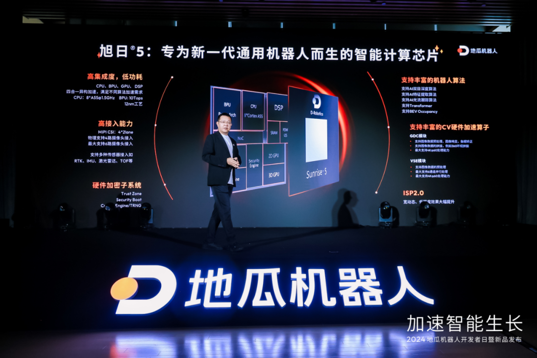 ▲地瓜機(jī)器人發(fā)布旭日5智能計(jì)算芯片