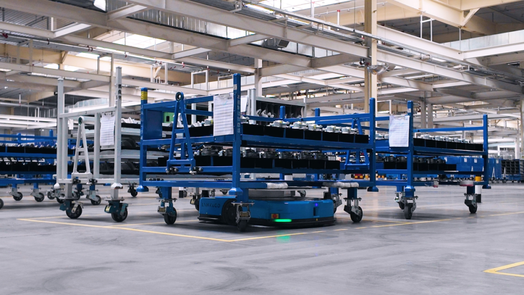 在汽車行業(yè)中,生產(chǎn)節(jié)拍是衡量制造效率的關(guān)鍵指標(biāo)。領(lǐng)克汽車張家口工廠的數(shù)智化轉(zhuǎn)型決心主要基于三大生產(chǎn)需求:首先,生產(chǎn)節(jié)拍需求的大幅提升,要求生產(chǎn)線必須消除工序中的瓶頸,以實(shí)現(xiàn)生產(chǎn)速度和效率的提高。其次,多車型混線生產(chǎn)導(dǎo)致所需物料種類從4000種激增至6500種,這不僅增加了物料管理的復(fù)雜性,也對(duì)生產(chǎn)線的靈活性提出了更高要求。最后,廠區(qū)內(nèi)車輛種類繁多,頻繁的人工拖車和磁條式AGV搬運(yùn)作業(yè)常常導(dǎo)致?lián)矶?,增加了人力成本。同時(shí),由于總裝車間的技改布局經(jīng)常需要調(diào)整,傳統(tǒng)的AGV已無法滿足物流的柔性化需求。