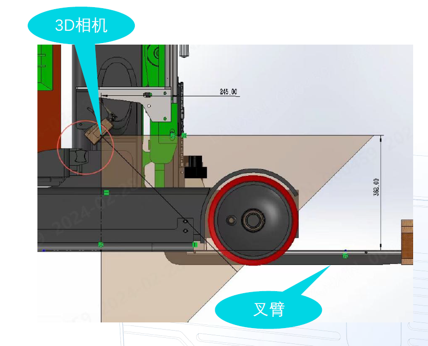 位置:相機(jī)固定在升降機(jī)構(gòu)上,水平拍攝,負(fù)責(zé)兩側(cè)叉臂上料筐的識(shí)別。