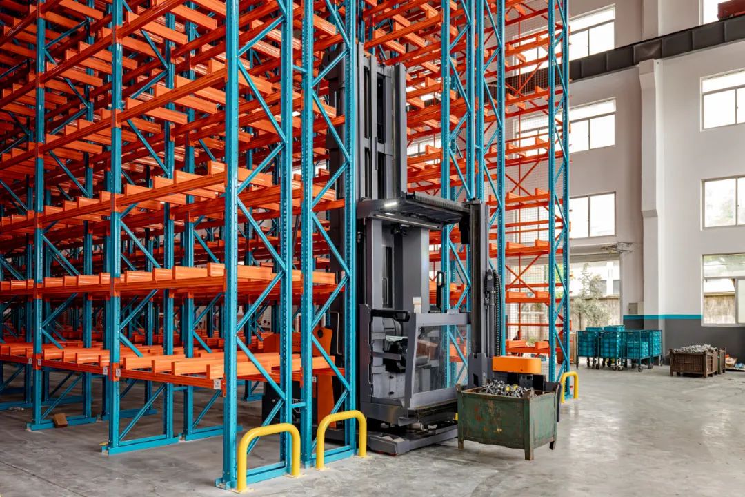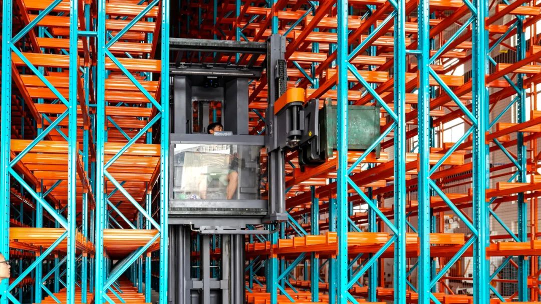 卓一人上行三向叉車最大起升高度15.5m,最窄作業(yè)通道僅需1.75m。搭配11m高的貨架,以1.75m的間距、36m的貨架深度展開布局,充分釋放橫向、縱向及垂直存儲空間,大幅提升了整體庫容量、企業(yè)倉儲成本降低。