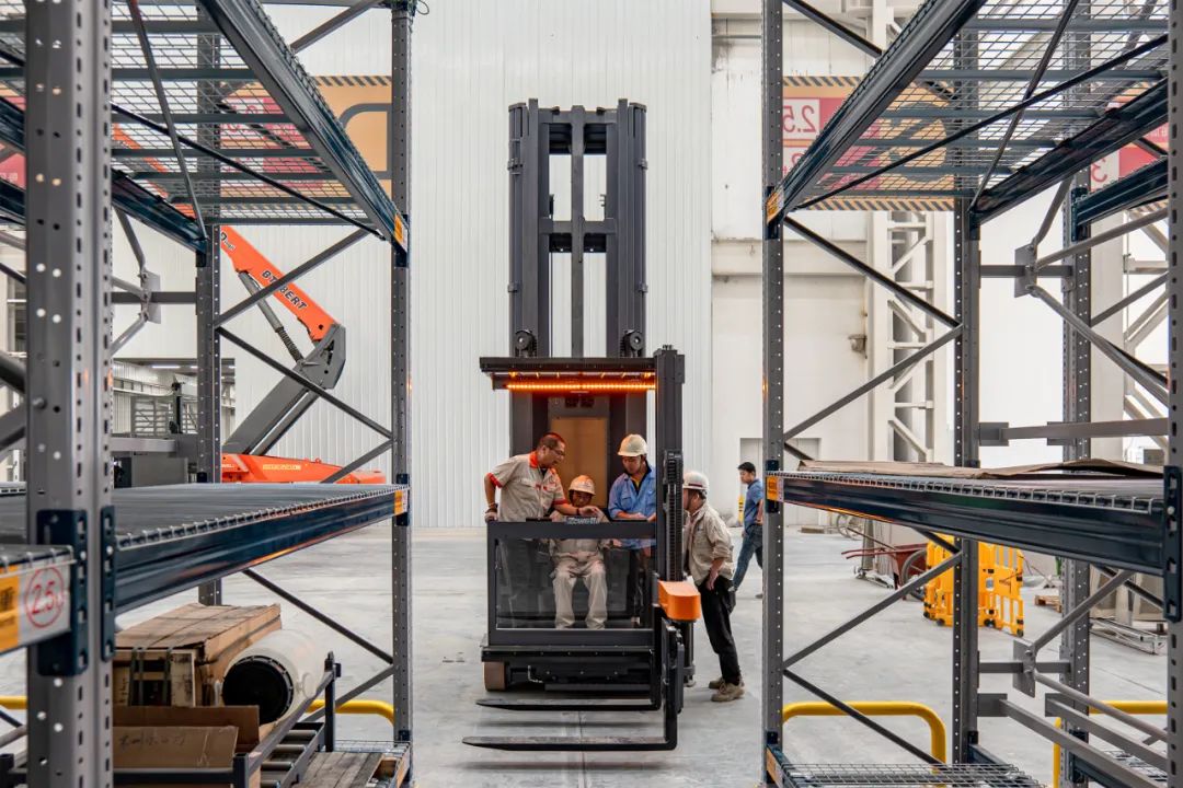 人上行三向叉車最大載荷1.6噸、高空載荷能力強(qiáng),單次可搬運(yùn)貨物量大,在巷道內(nèi)也能快速行走,將顯著提升原料入庫、對接生產(chǎn)、成品入庫出庫環(huán)節(jié)的裝卸運(yùn)輸效率,為整體物流環(huán)節(jié)增效賦能!