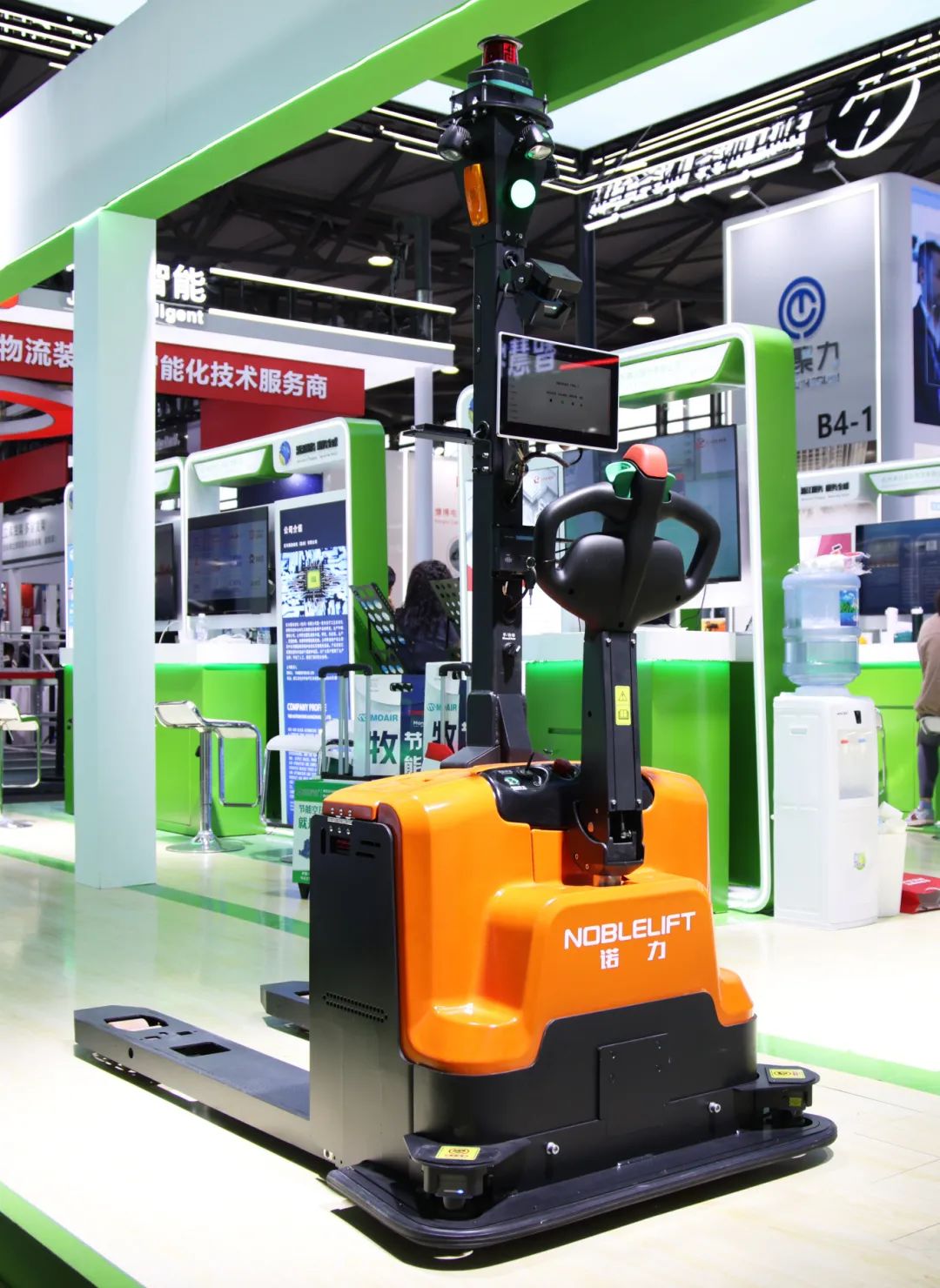 諾力攜托盤(pán)搬運(yùn)AGV-APT15、新款電動(dòng)搬運(yùn)車(chē)凌威PWB-200、站駕式電動(dòng)堆垛車(chē)PSE15-C亮相現(xiàn)場(chǎng)。在展會(huì)現(xiàn)場(chǎng)的動(dòng)態(tài)演示中,托盤(pán)搬運(yùn)物流機(jī)器人APT15展現(xiàn)在狹小空間運(yùn)行的能力和全方位的安全防護(hù)性能,吸引專(zhuān)業(yè)觀(guān)眾關(guān)注的目光。諾力APT15采用先進(jìn)的SLAM激光環(huán)境導(dǎo)航技術(shù),能夠迅速準(zhǔn)確地在未知環(huán)境中建立地圖并實(shí)現(xiàn)自主導(dǎo)航,適應(yīng)復(fù)雜多變的應(yīng)用場(chǎng)景;產(chǎn)品設(shè)計(jì)美觀(guān)簡(jiǎn)潔,確保用戶(hù)輕松完成安裝與初始化設(shè)置,人機(jī)交互性強(qiáng);半自動(dòng)運(yùn)行確保物料搬運(yùn)的靈活、安全、高效;支持多站點(diǎn)任務(wù)配置和管理,可以滿(mǎn)足現(xiàn)場(chǎng)多元化的需求,提升工作效率。