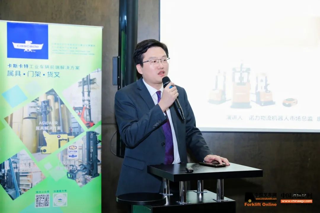 與展會(huì)同期的2024中國(guó)工業(yè)車(chē)輛與移動(dòng)機(jī)器人數(shù)智化發(fā)展高峰論壇成功舉辦。該論壇聚焦工業(yè)車(chē)輛與移動(dòng)機(jī)器人的數(shù)智化轉(zhuǎn)型、未來(lái)趨勢(shì)及創(chuàng)新應(yīng)用多項(xiàng)議題。諾力集團(tuán)市場(chǎng)總監(jiān)馮安順、上海諾力智能科技有限公司市場(chǎng)總監(jiān)唐博受邀出席并演講。唐博詳細(xì)闡述諾力十余年來(lái)專(zhuān)注于“優(yōu)化內(nèi)部物流,賦能智能制造”這一目標(biāo)的戰(zhàn)略布局與實(shí)踐成果。其中智慧物流已成為提升生產(chǎn)效率和降低成本的關(guān)鍵,內(nèi)部物流定義為企業(yè)在生產(chǎn)過(guò)程中的物流活動(dòng),涉及原料到成品的全環(huán)節(jié)。諾力致力于成為全球一流的智能內(nèi)部物流系統(tǒng)提供商,通過(guò)技術(shù)創(chuàng)新和系統(tǒng)集成,打造涵蓋智能物料搬運(yùn)設(shè)備、倉(cāng)儲(chǔ)分揀設(shè)備和綠色新能源的全產(chǎn)業(yè)鏈。諾力四期智能工廠(chǎng)的智能化實(shí)踐,強(qiáng)調(diào)數(shù)字化、自動(dòng)化及人工智能技術(shù)的應(yīng)用,推動(dòng)物流效率的提升和生產(chǎn)周期的縮短。諾力的智能倉(cāng)儲(chǔ)管理系統(tǒng)與AGV搬運(yùn)系統(tǒng)的集成,不僅提高物料搬運(yùn)精準(zhǔn)度和實(shí)時(shí)監(jiān)控能力,同時(shí)降低人力成本和勞動(dòng)強(qiáng)度,展現(xiàn)諾力在智慧物流領(lǐng)域的前沿探索與實(shí)踐成果。