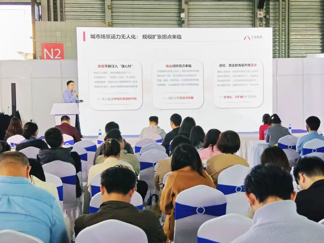 CeMAT ASIA創(chuàng)新沙龍,作為本屆展會的焦點活動,致力于為到場的專業(yè)觀眾提供更豐富的行業(yè)信息、更多元的觀展體驗和更專業(yè)的市場見解。其中食品專場,即第五屆全球食品飲料創(chuàng)新發(fā)展技術(shù)論壇上,行深智能副總裁陳洪標(biāo)發(fā)表了題為《無人配送車在智慧零售行業(yè)的應(yīng)用》的主旨演講,聚焦新質(zhì)生產(chǎn)力為實體經(jīng)濟筑基。