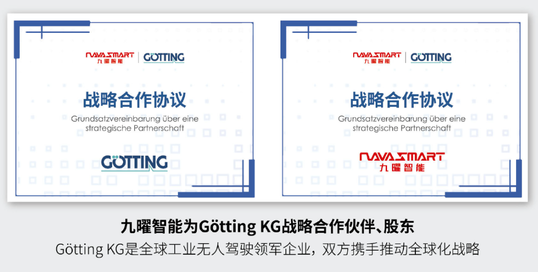 2024年,九曜智能正式完成對德國G?tting KG公司的參股,作為一家已經(jīng)成立60年的全球工業(yè)無人駕駛領軍企業(yè),G?tting KG將為九曜智能的出海戰(zhàn)略提供支持,攜手共進,共同深耕工業(yè)無人駕駛,引領全球智能物流技術革命!