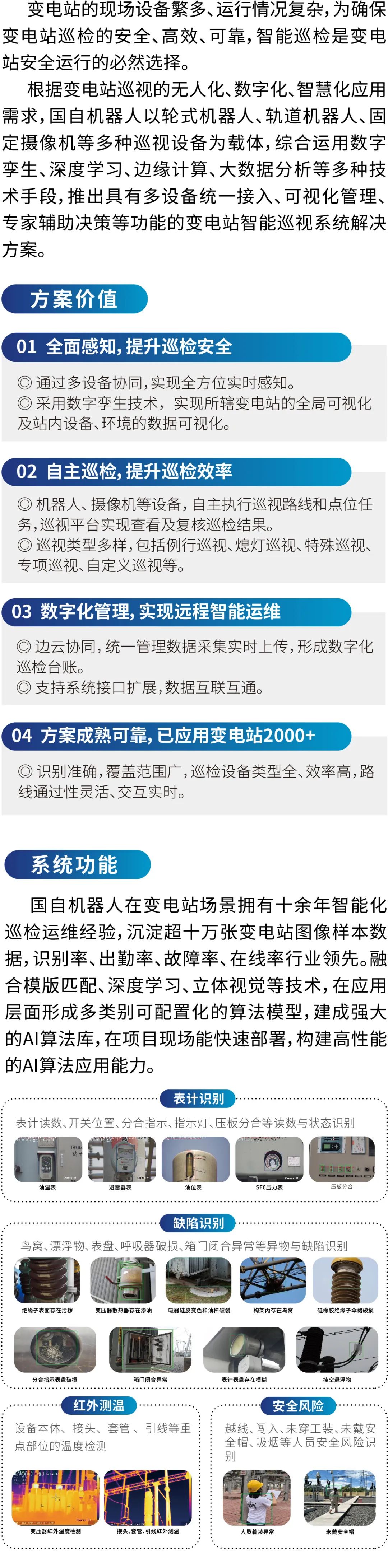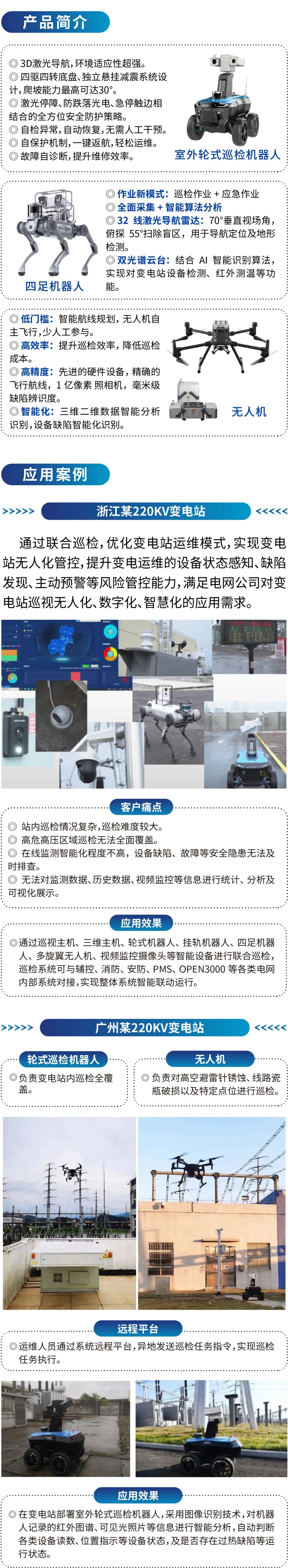 公司業(yè)務覆蓋電網(wǎng)、發(fā)電、石油石化、軌道交通、綜合管廊、工程機械、食品飲料、建材化工、先進制造、數(shù)據(jù)機房、公共空間等,為超過1000家海內(nèi)外客戶單位提供優(yōu)質的機器人產(chǎn)品及服務。業(yè)績涉足中國31個行政區(qū),并在美國、日本、歐洲、中東、東南亞等10余個國家和地區(qū)實現(xiàn)項目落地。