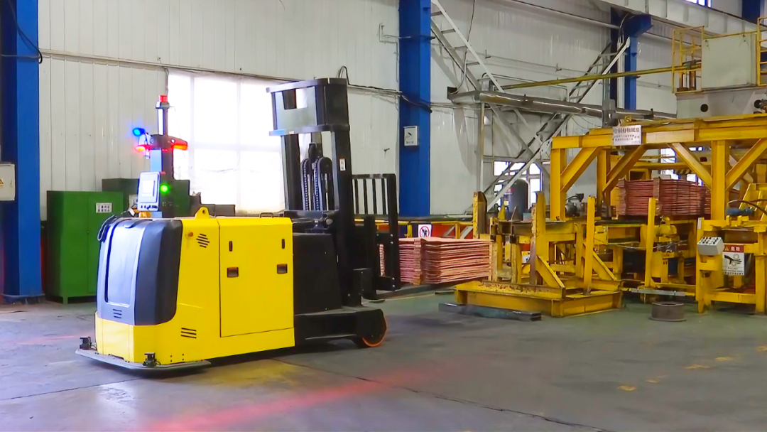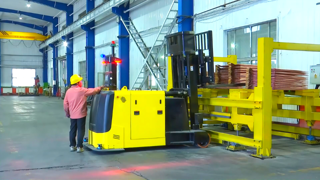 聽,這是什么聲音?“這江山我起筆 民族血脈有幾萬里……”這是轉運電銅AGV小車運行時播放的提示音樂,告訴員工它正在運行,要注意安全。小車采用的是基于激光雷達導航傳感器的自動駕駛控制系統(tǒng),通過報警、減速、停止三個階段進行整車防護,安全又省力,可有效避免安全事故的發(fā)生。