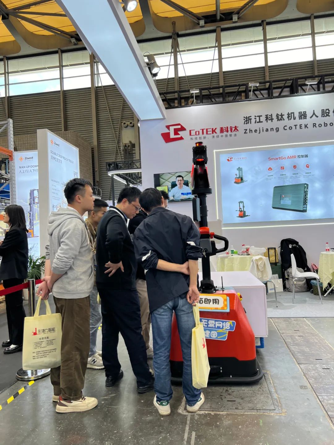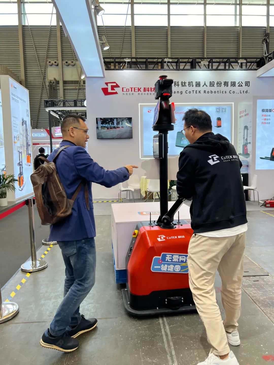 展會(huì)上,科鈦展位W5-C3成為了熱門(mén)打卡點(diǎn),吸引了大量觀眾駐足參觀?,F(xiàn)場(chǎng)人潮涌動(dòng),氣氛熱烈,科鈦機(jī)器人展出全新升級(jí)的極簡(jiǎn)版CP15和物流版CP20-S以及科鈦?zhàn)匝泻诵目刂破?,為觀眾提供了親身體驗(yàn)智能倉(cāng)儲(chǔ)和運(yùn)輸?shù)母咝Я鞒痰臋C(jī)會(huì),共同探討智能物流的未來(lái)發(fā)展。