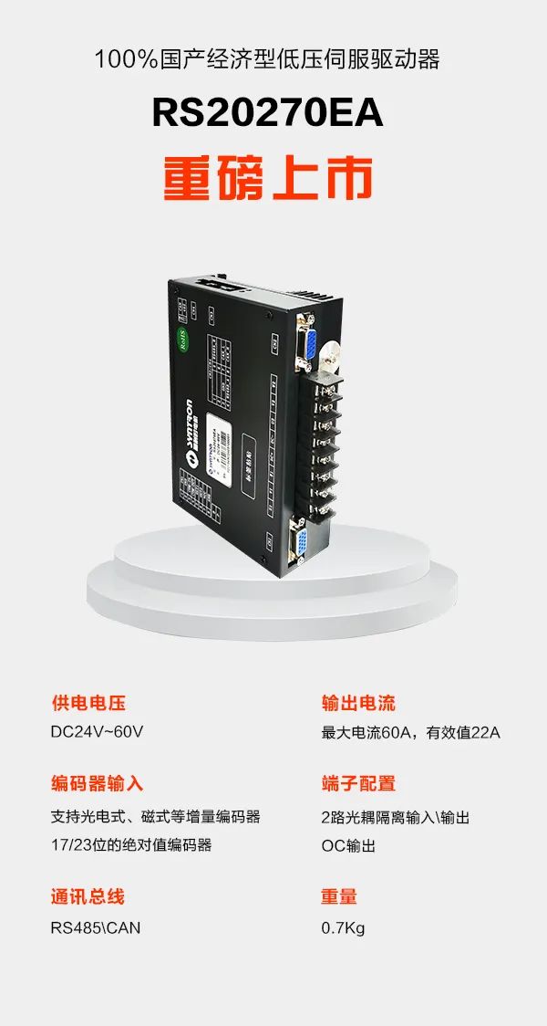 RS20270EA核心部件自主研發(fā),采用100%國產(chǎn)零部件,功耗低,性能卓越,可對永磁同步低壓伺服電機的位置、速度和轉(zhuǎn)矩進(jìn)行精確控制,可廣泛應(yīng)用于服務(wù)機器人、清潔機器人、配送機器人、物流行業(yè)AGV、AMR、無人叉車等移動設(shè)備領(lǐng)域。