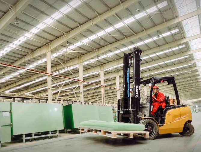 各類玻璃的原料及成品快速轉(zhuǎn)運,需要借助叉車來完成搬運。在礦產(chǎn)資源豐富的黔東南州某大型玻璃廠內(nèi),一批三一SCPC6系列高壓鋰電平衡重叉車正在不分晝夜地進行物料搬運,助力客戶快速、高效達成生產(chǎn)指標(biāo)。