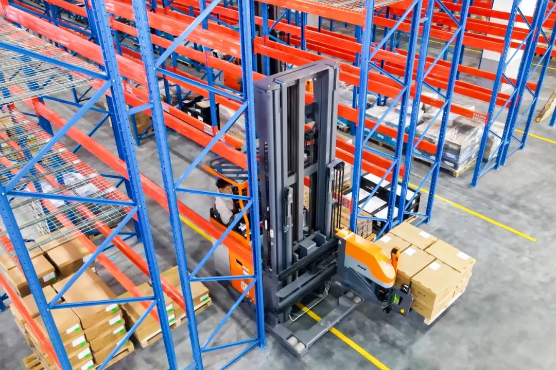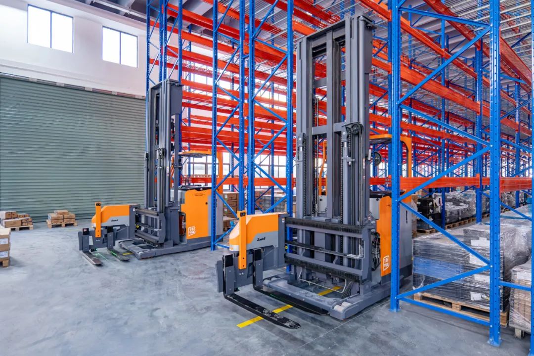 近日,卓一智能叉車兩臺人下行三向叉車落地新能源汽配行業(yè)客戶現(xiàn)場。