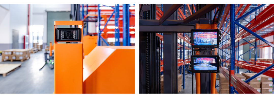 另外,貨叉處安裝了無線攝像頭輔助駕駛員進行存取堆垛作業(yè),實時畫面清晰可見,貨物規(guī)格大也不會影響叉車駕駛員的堆垛視野。