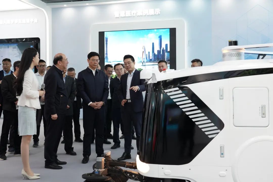 在展廳的動態(tài)演示區(qū),陳濤市長一行觀看了配送機(jī)器人任務(wù)下單、響應(yīng)、配送及卸貨的全流程演示。李良源為陳濤市長介紹了醫(yī)院全場景物流配送解決方案。該方案聚焦于醫(yī)院運營痛點,通過建立醫(yī)院物流系統(tǒng)的數(shù)字模型,實現(xiàn)全院“無人值守”的物資末端供應(yīng)和院感管控,全方位重塑醫(yī)院后勤保障生態(tài)。