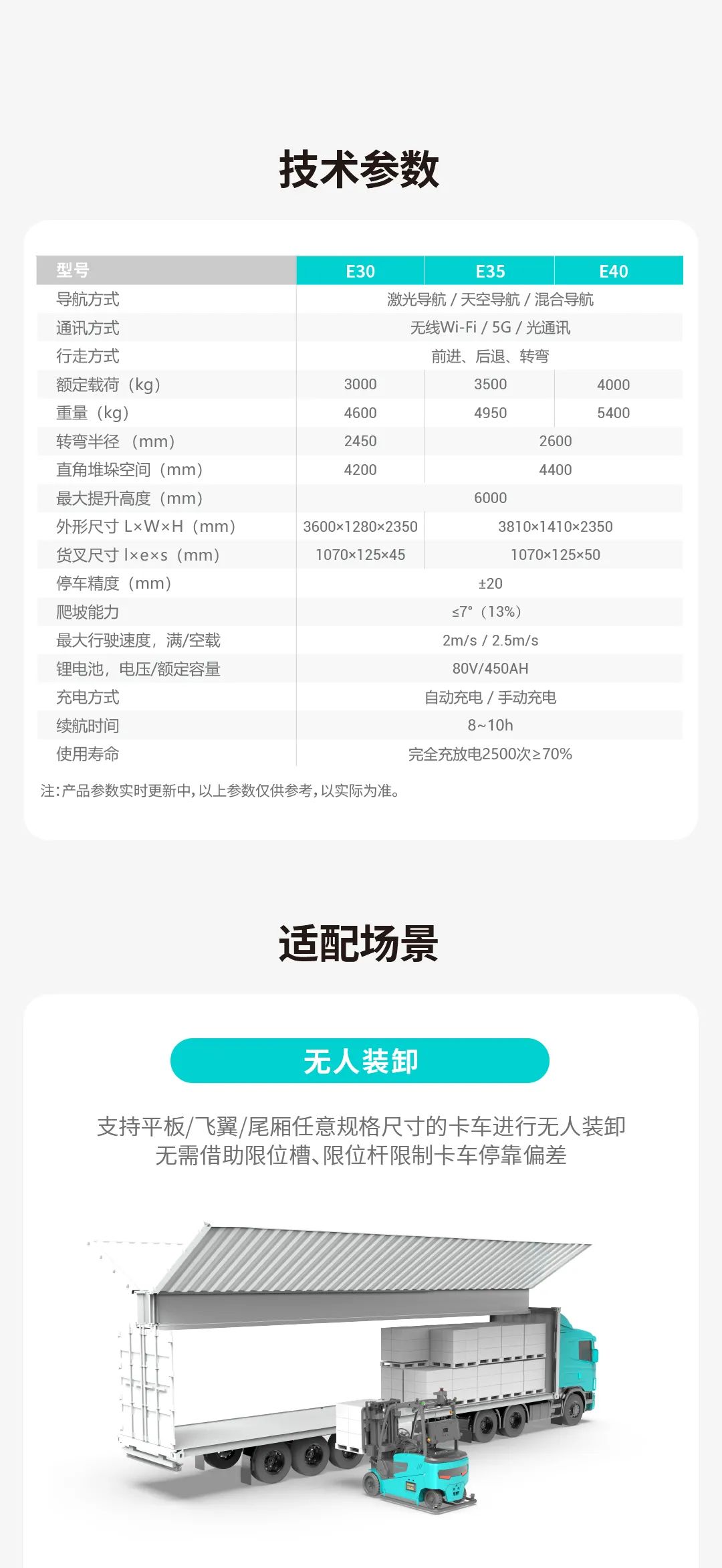 超強負載,多場景應(yīng)用,勱微機器人E系列平衡重式無人叉車解決方案